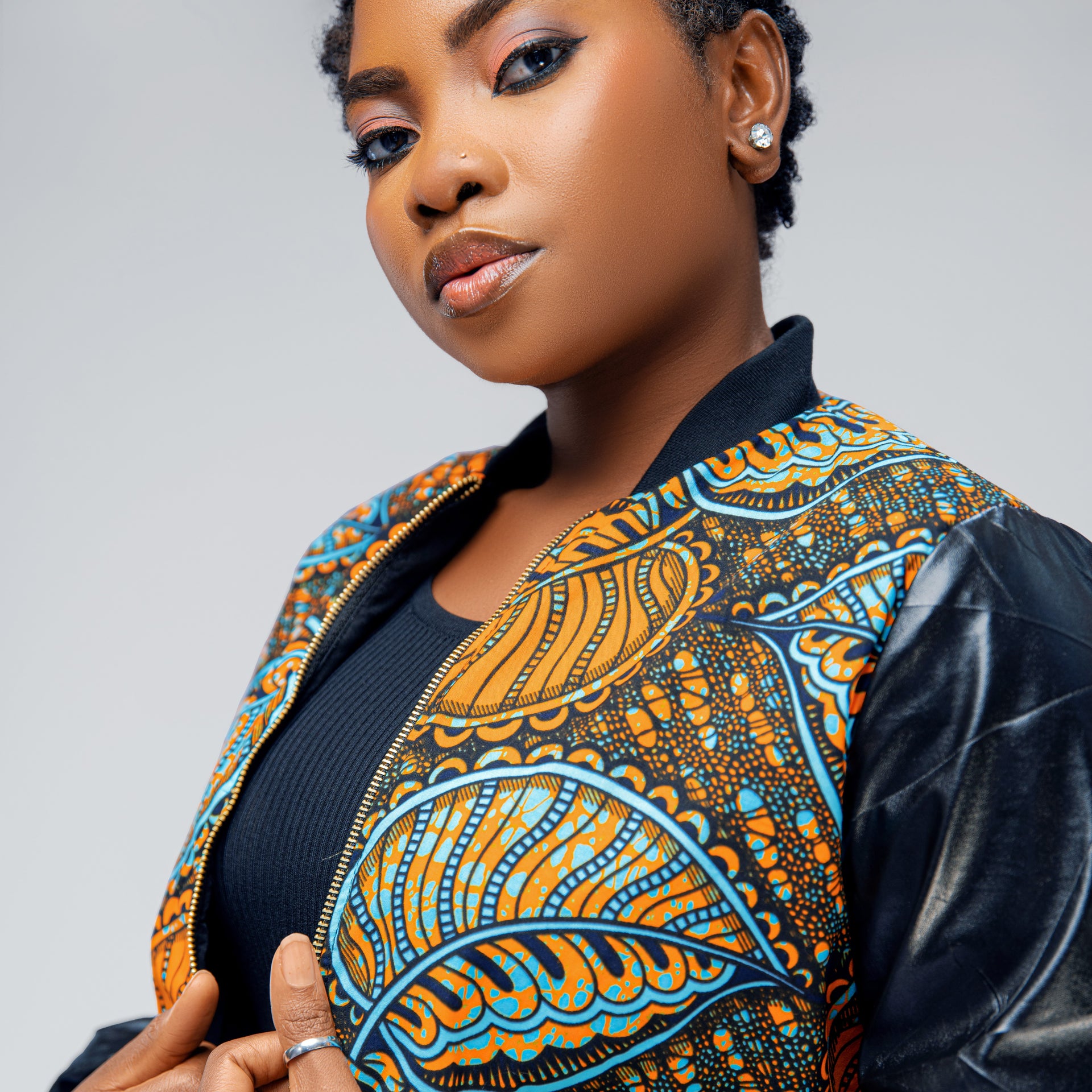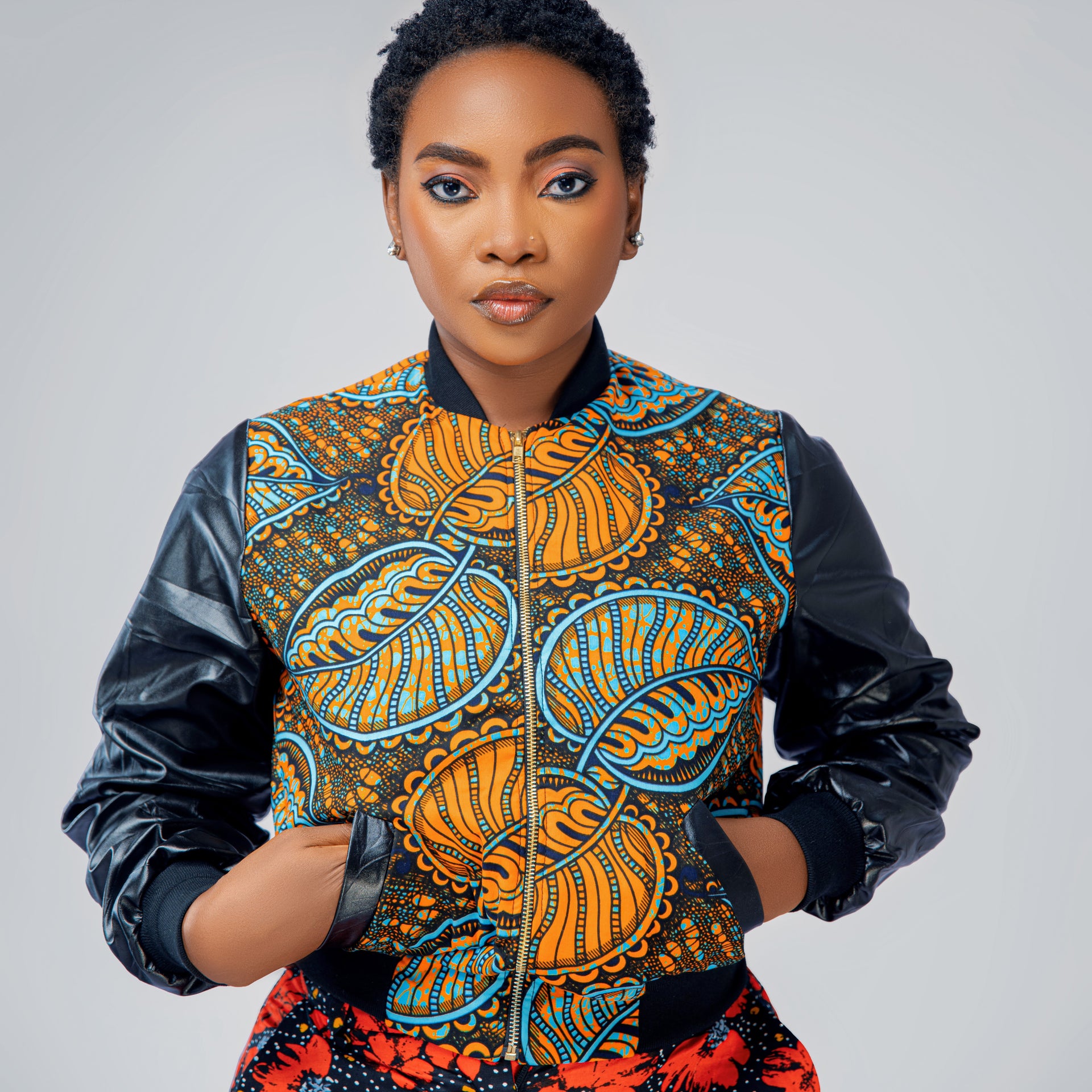 Elevate your streetwear style with our African Print Bomber Jacket, where tradition meets modern edge. Designed with a vibrant Ankara print front panel in orange, blue, and black, this jacket is a true statement piece. The sleek black faux leather sleeves add a touch of urban chic, making it versatile enough for both casual and dressy occasions.